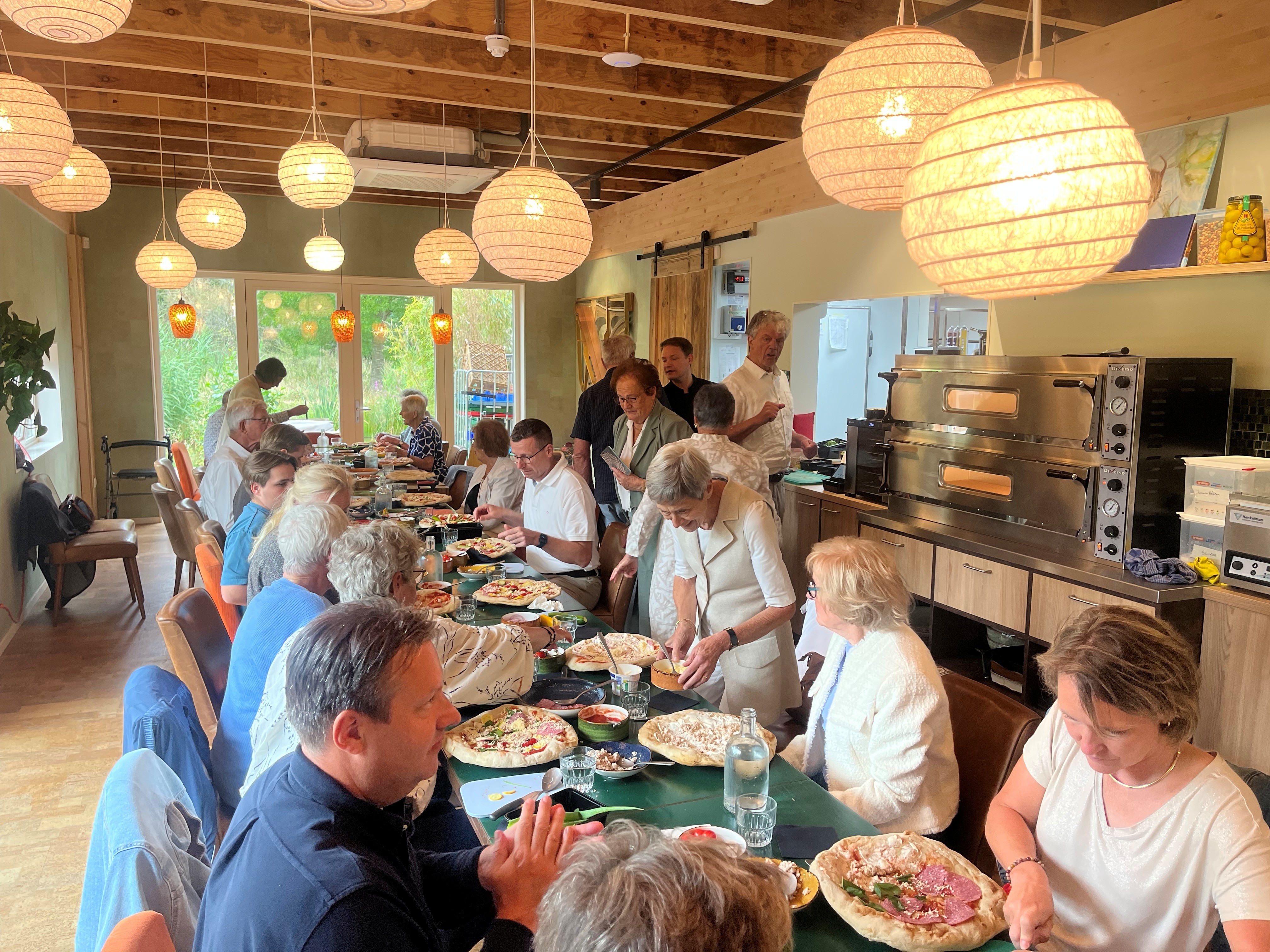 Een grote multifunctionele vergaderruimte die geschikt is voor conferenties, grote vergadergezelschappen en zakelijke borrels. Met eigen bar en balkon en uitzicht op een levendige moestuin.