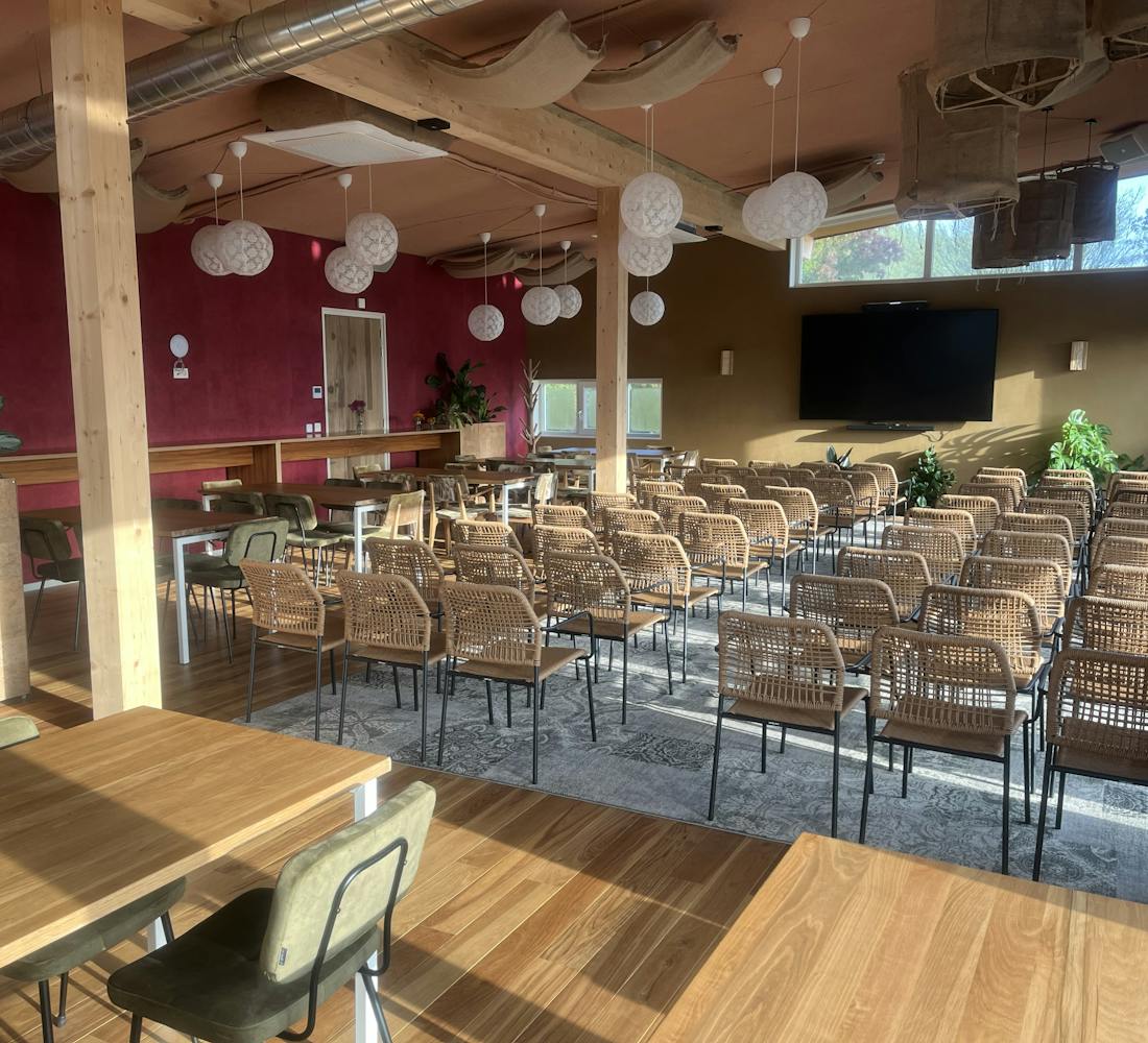 De grote zaal boven is bijzonder geschikt voor lezingen en vitaliteitsworkshops. We bieden actieve en leerzame modules aan over ademhaling, beweging en gezond leven en werken. Ook is het mogelijk om als onderdeel van je programma een yoga sessie te doen, waarna je weer vol energie en in verbinding met elkaar de vergadering of heisessie vervolgt.